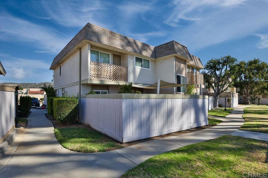 FHA and VA approved planned unit development (PUD)! Perfectly located in a smaller HOA with just 55 units in Santee you will find this adorable 2 bedroom, 1.5 bathroom two story townhouse. Recent updates include a new roof in 2021, water heater in 2020, and new HVAC in 2016. The community includes a wonderful open space for your outdoor enjoyment, a community pool and dog walk. This home includes one assigned, uncovered parking space, additional spaces available for a second car or guests and in unit laundry. There is also an outdoor fenced patio. Both bedrooms are upstairs with one bathroom & the guest bathroom can be found on the main level with the living room and dining room. The HOA fees are $348/month and include water.