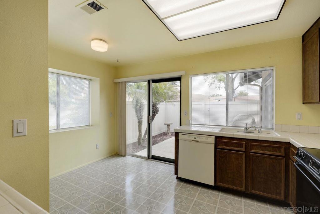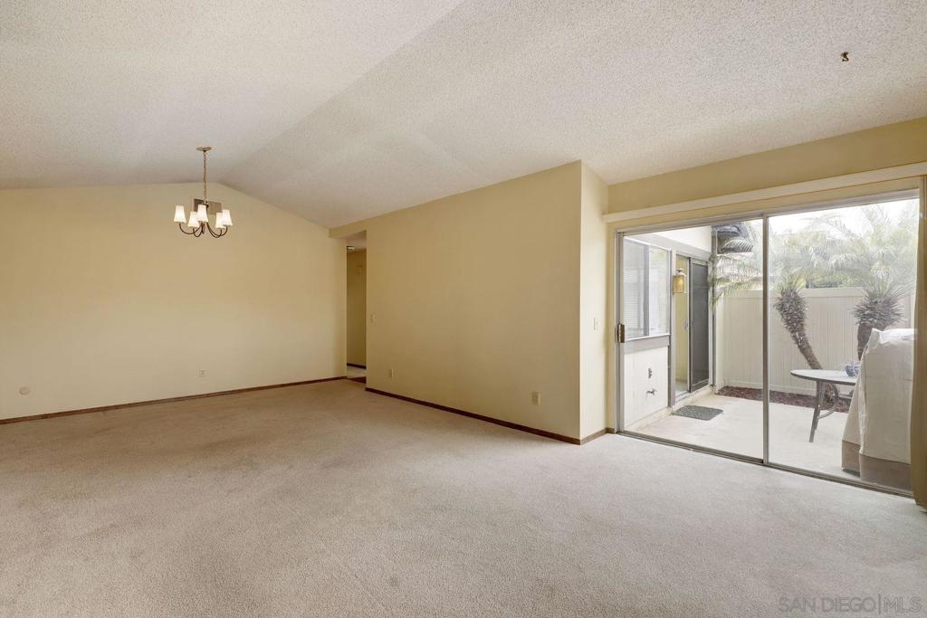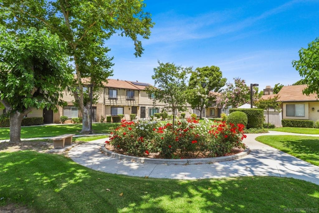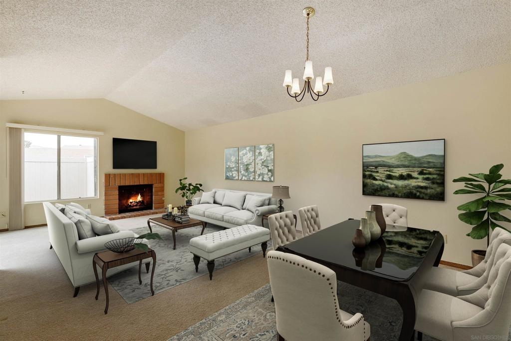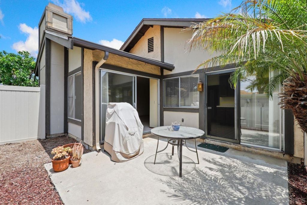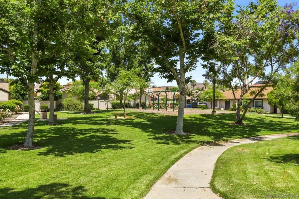 Welcome to this highly desirable single level, corner unit home with no shared walls! A clean slate to create your dream living space. Enter to find a dining area that seamlessly connects to the living room with high vaulted ceilings and a cozy fireplace, providing a versatile space. The well-appointed kitchen features plenty of cabinet and counter space and full size washer/dryer closet. Sliding doors lead you to the private patio with newer vinyl fencing, ideal for relaxing or entertaining. All three bedrooms are down the hall including the large primary suite with high vaulted ceilings, seating area with access to a private patio, and an attached bathroom with walk-in closet. The secondary bedrooms are generous in size and share the full hall bath. Additional features include central AC, and an attached 2-car garage providing extra storage space. Countryside Magnolia offers its residents a variety of amenities and conveniences from lush green spaces to a community pool and playground. Just minutes to Santana High school, Santee town center, walking trails, shopping, restaurants, and close to the 52 and 67 highways. Hurry! Come make this one-of-a-kind property your own!