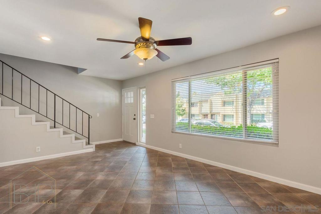 Welcome to this beautiful 3bd 1.5 bath condo located near the hills of Santee. Quite neighborhood and walking distance to schools and parks. Downstairs offers a living room, kitchen, dining room and full-size pantry. Living room has been updated with can-lighting along with the kitchen. The condo also has been resurfaced with fresh paint. Walk into the back yard with new concrete, patio cover and astroturf. The patio connects to a two-car garage that offers additional storage. All three bedrooms are situated upstairs with views. Master bedroom is spacious with a walk-in closet, dual sinks, and private bath area. This home is move in ready, new A/C, heater with new vents in the attic, and as a bonus, includes solar that has been paid off.