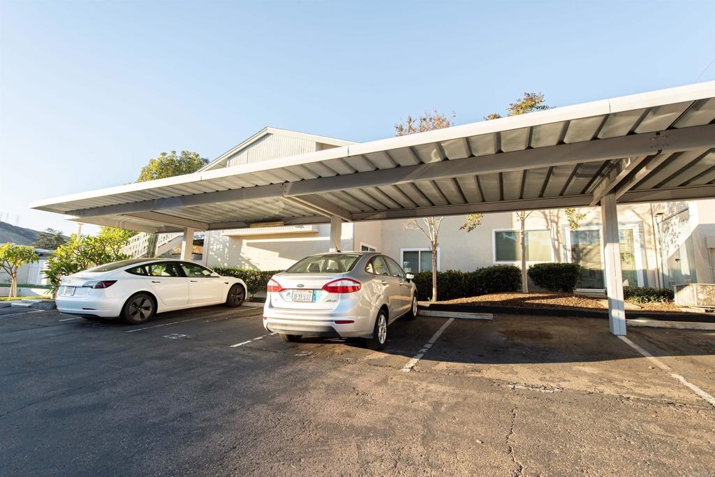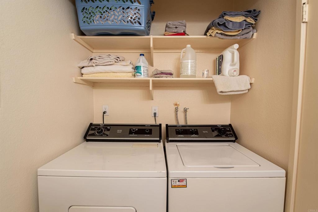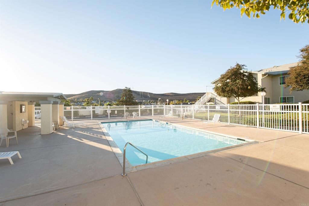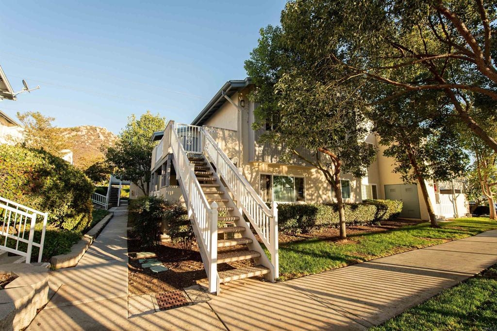 Welcome to Riderwood Square Condominiums. This 2 bedroom 1.5 bath upper end unit is light & bright and offers a comfortable, open floor-plan that is perfect for families or singles alike. Unit has it's own laundry area inside plus central A/C, double paned windows, ceiling fans, private patio, one assigned carport space and plenty of visitor parking. Conveniently located near parks, schools, shops, restaurants, Santee Lakes and trolley. The HOA fee is $472.50/month which includes water/sewer, hot water, trash, landscaping, pool, pest control, insurance and exterior maintenance. Complex is both FHA and VA approved. Refrigerator, Dishwasher, Range, Washer & Dryer all convey. HOA allows one pet not to exceed 25lbs.