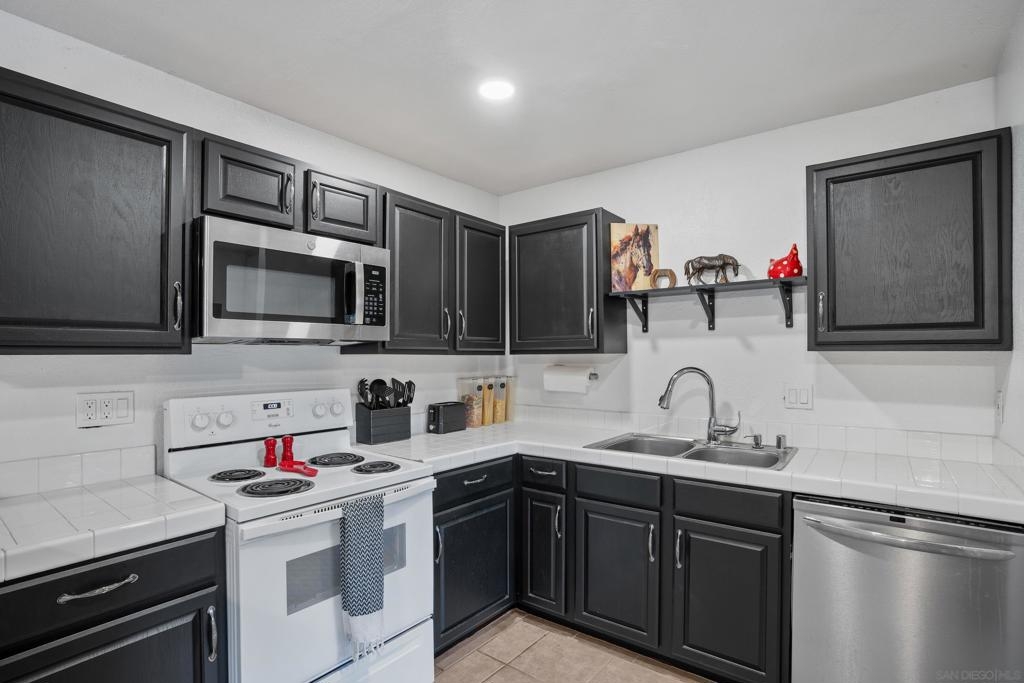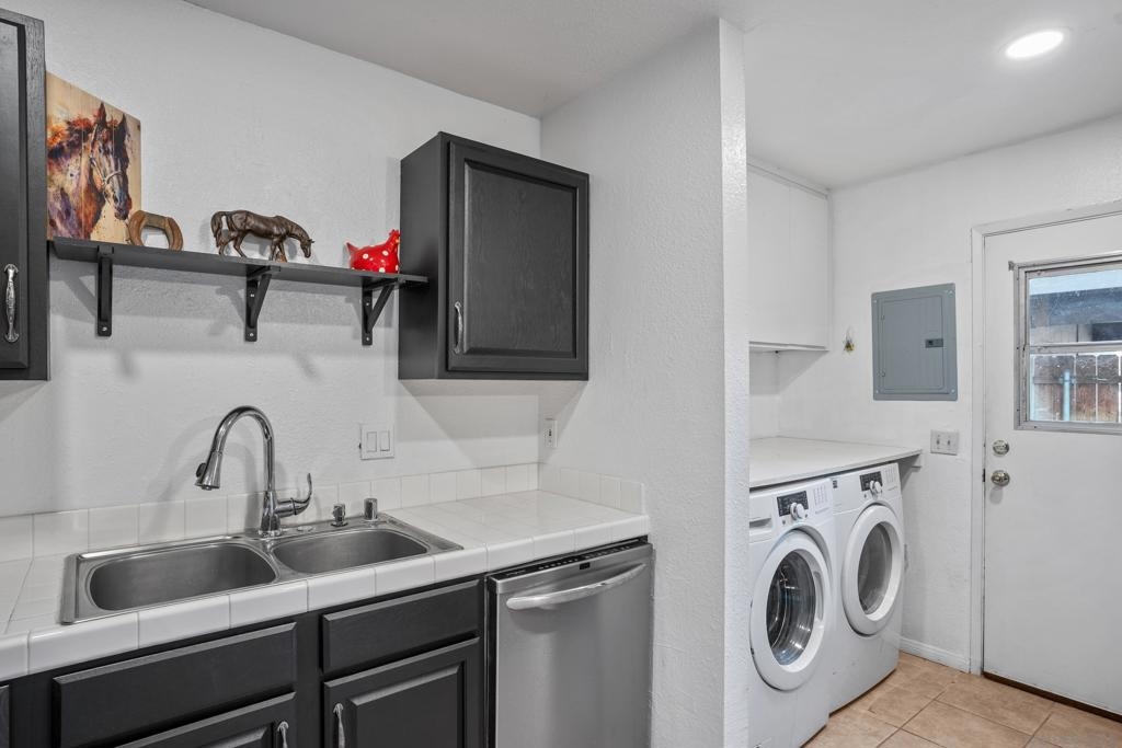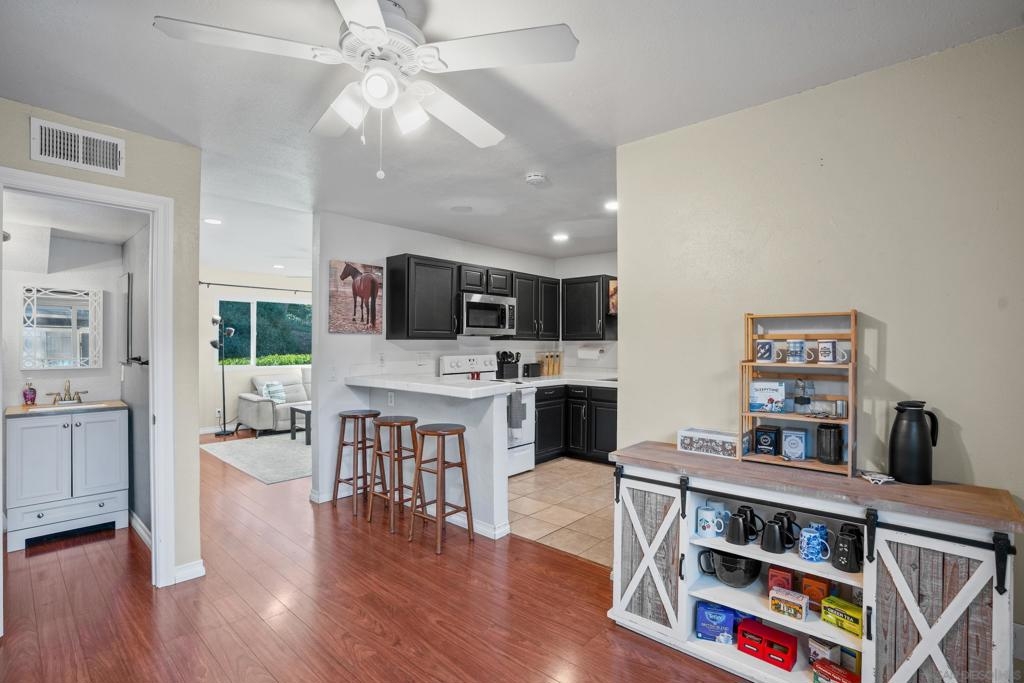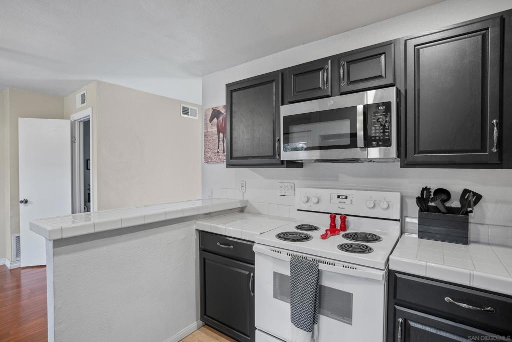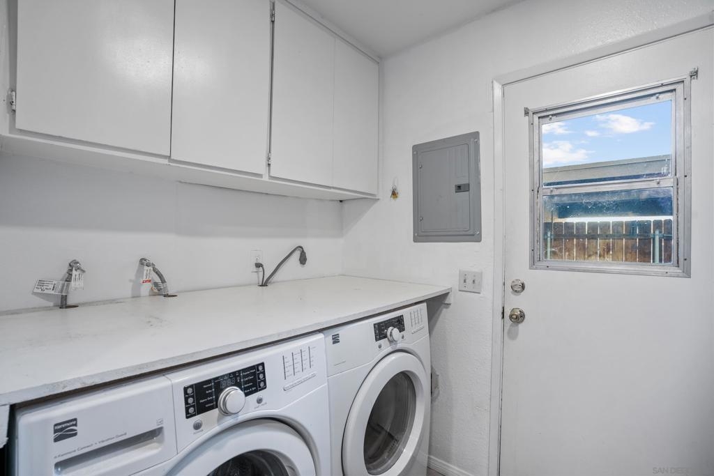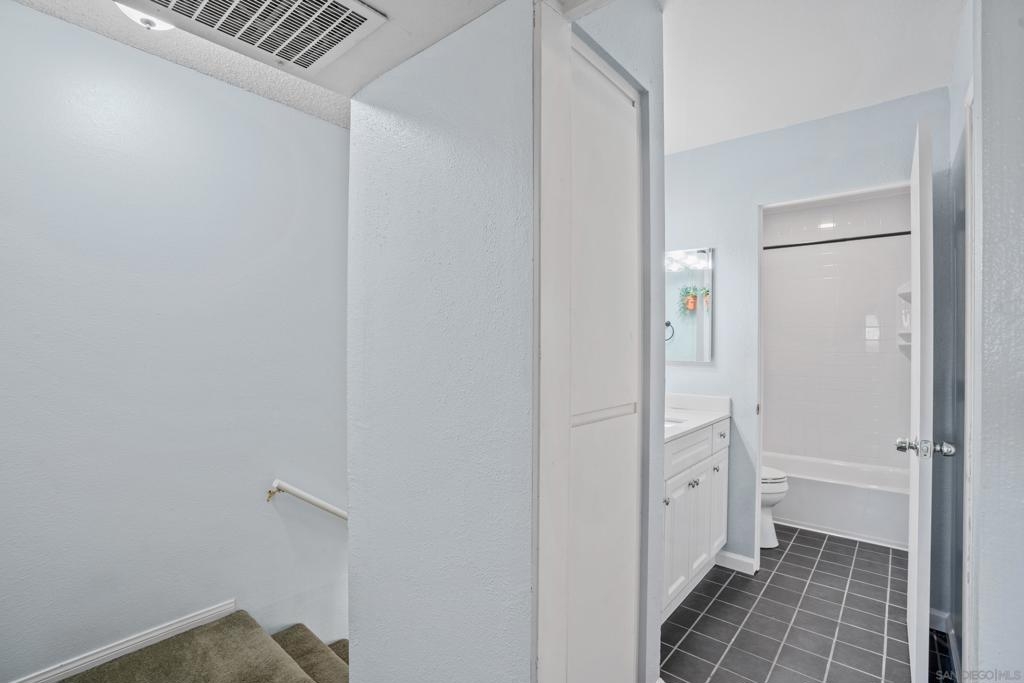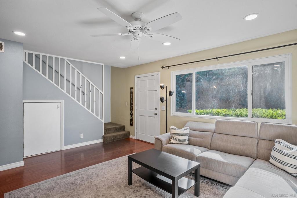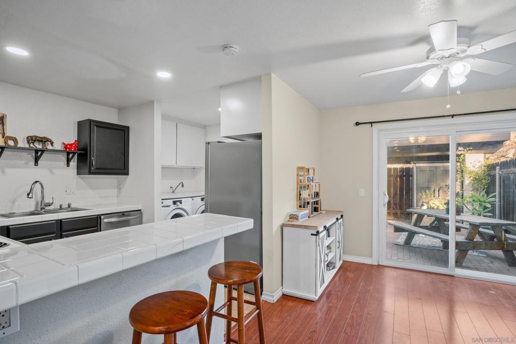 Come see this 2-story, 3 bed, 1.5 bath Santee townhome in the private 35-unit community of Rio Terrace. Host your guests downstairs in the living room, half bath, kitchen, and dining room with a sliding door leading to the private back courtyard. Kitchen features a built-in pantry and full size washer/dryer. Upstairs are three bedrooms, along with an updated full bath. Newer HVAC unit is only one year old! The covered carport fits 2 cars and has plenty of additional parking just steps from the private entrance. This end-unit has privacy, plenty of greenbelt to enjoy, and plenty of guest parking. Rio Terrace is VA/FHA approved and minutes from the 67 freeway, located at the east end of Santee. Close to stores, Santee Town Center, schools, entertainment, and more.