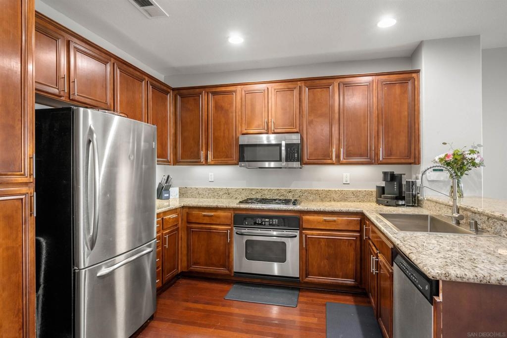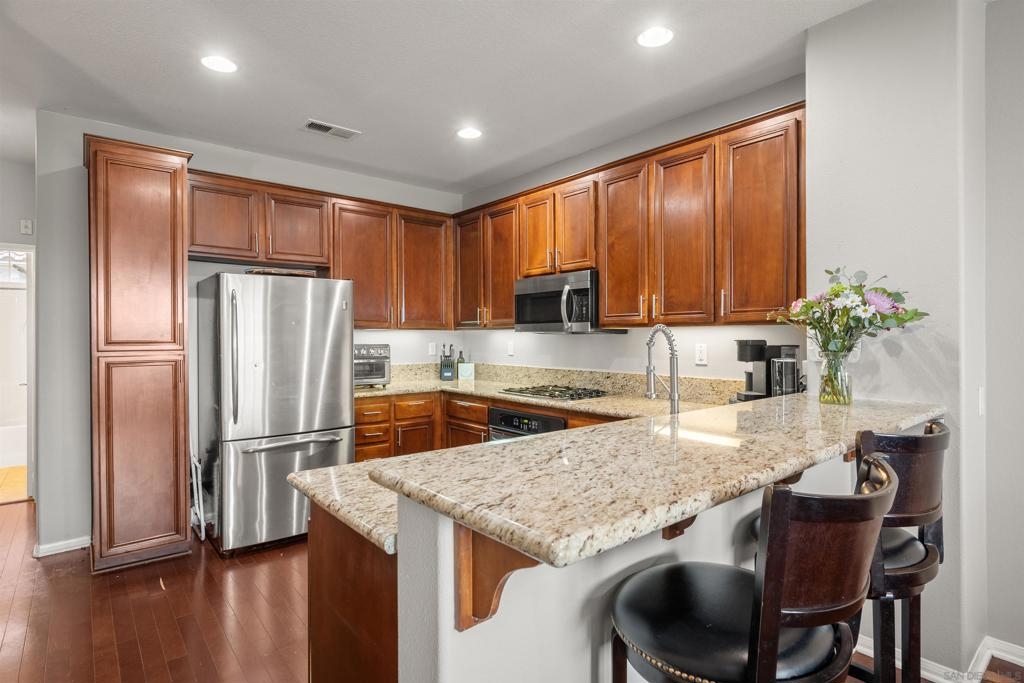 Welcome to your new home in Santee! This charming townhouse offers a perfect blend of comfort and functionality, boasting three bedrooms, three bathrooms, and an array of desirable features. Upon entering, you're greeted by freshly painted walls that create a bright and inviting atmosphere throughout the home. The open living space is ideal for hosting gatherings with friends and family, allowing for seamless entertainment and relaxation. With dual primary suites, this townhouse offers flexibility and privacy for residents or guests. Each suite comes complete with its own private bathroom, ensuring convenience and comfort for everyone. Say goodbye to trips to the laundromat, as this home includes its own dedicated laundry room, making chores a breeze. Additionally, you'll enjoy the convenience of garage parking for two vehicles, along with ample storage space to accommodate your belongings. Warm up on chilly evenings by the beautifully remodeled fireplace, creating a cozy ambiance in the living area. The kitchen is a chef's dream, featuring gas cooking, upgraded hardware, and a new sink, providing both style and functionality for culinary endeavors. Located in the vibrant community of Santee, this townhouse offers easy access to shopping, dining, and outdoor recreation opportunities. Don't miss out on the chance to call this meticulously maintained property your new home sweet home!