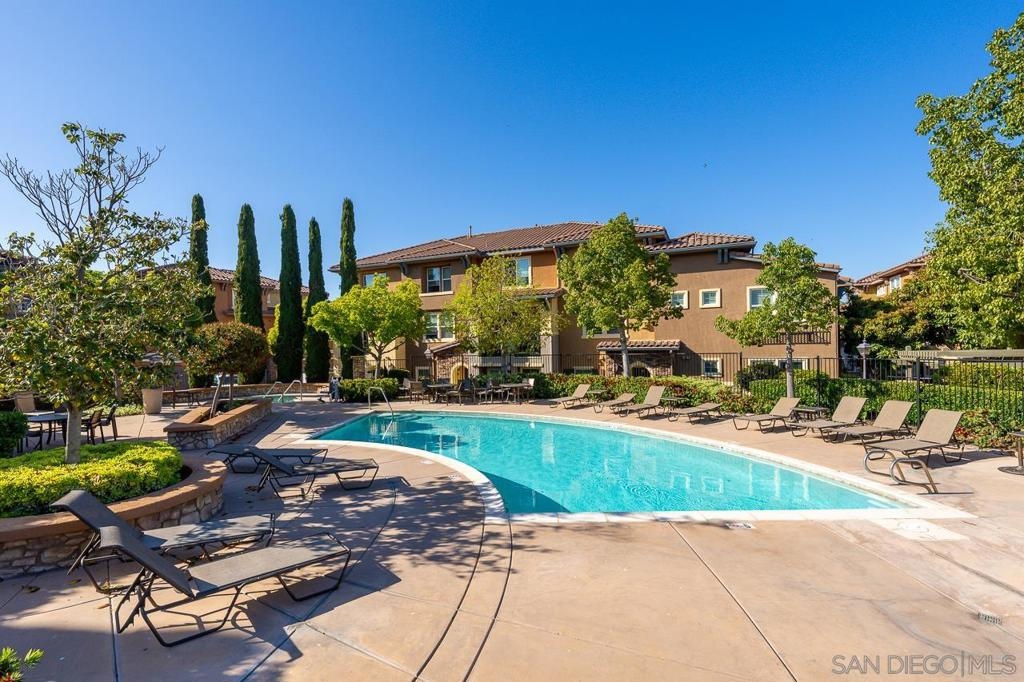 Nestled in the prestigious Treviso community, this elegant 2-bedroom, 2.5-bathroom residence exudes timeless sophistication. Built in 2005, this meticulously maintained home boasts 1234 square feet of luxurious living space. Step inside to discover new interior paint, plush new carpet, and gleaming hardwood floors illuminated by recessed lights. The open floor plan seamlessly connects the living, dining, and kitchen areas, creating an inviting ambiance for entertaining. The dual primary bedrooms each feature walk-in closets and en-suite bathrooms, while a convenient half bath graces the main living area. A 2-car garage offers ample parking. Enjoy access to pool amenities and the convenience of in-unit washer and dryer. Ideally located near freeways, schools, and shopping, this home epitomizes luxury living in Santee, CA.