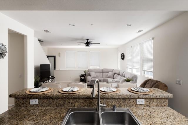 Beautifully updated corner unit townhome in the highly sought-after Treviso community! Step inside to discover an exquisite, open-concept living space featuring two expansive bedrooms and 2.5 pristine bathrooms. The modern kitchen, complete with sleek granite countertops and an island bar, is perfect for both entertaining and intimate gatherings. High ceilings and large windows flood the home with natural light, creating an inviting ambiance that will captivate your guests. The upper level unveils two generously sized bedrooms, each boasting their own ensuite full bath and walk-in closets, offering the ultimate blend of comfort and luxury. Abundant storage and convenience await you in this 2-car garage with dual entries, ensuring effortless access. Don't miss this exceptional opportunity to live your best life in this bright and spacious corner unit townhome that truly has it all!