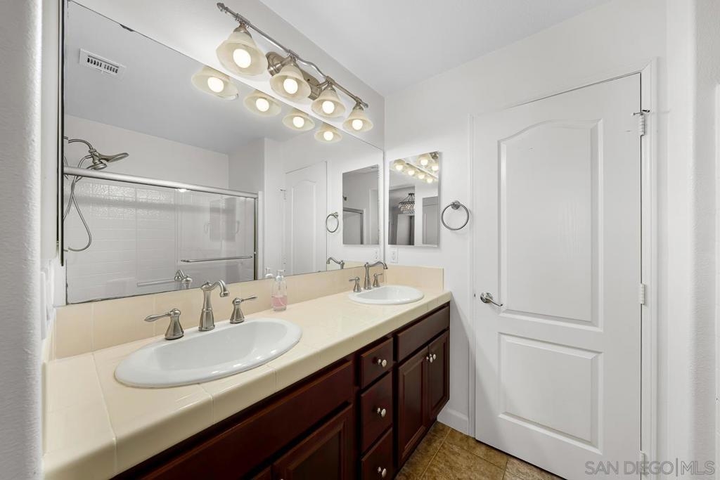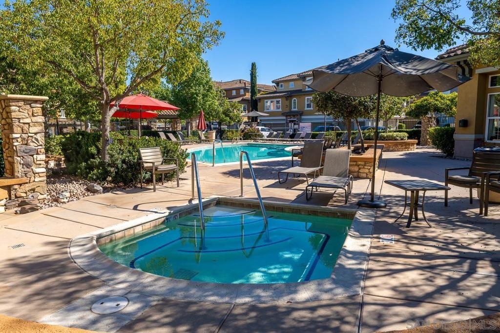 Welcome to Treviso, a well maintained and VA-approved complex just steps away from scenic Mission Trails. This tri-level townhome features a bonus room, laundry room equipped for a full-sized washer & dryer and an attached 2 car garage with Epoxy flooring on the first floor. As you make your way to the second level, you're welcomed by ample natural lighting, the spacious living room with a cozy fireplace, and the recently remodeled kitchen with a newer refrigerator, range/hood as well as updated cabinets and countertops. The second level also includes a 1/2 bathroom for your convenience. On the top level, you will find 2 spacious bedrooms each with their own attached full bathroom and spacious closets. Unit includes central AC & heating as well as updated lighting with modern fixtures. Ideal location in the complex with views of rolling hills and lush greenery as the front of the unit faces towards Mission Trails with no neighbors in between. Complex features a community pool and hot tub. Unbeatable location just minutes from Mission Trails Regional Park, Santee Town Center, local schools, as well as the 52 & 125 freeways. This is a must see!