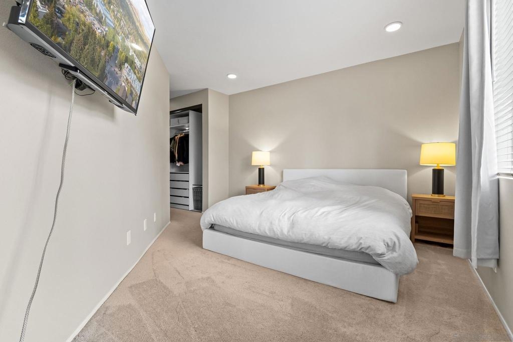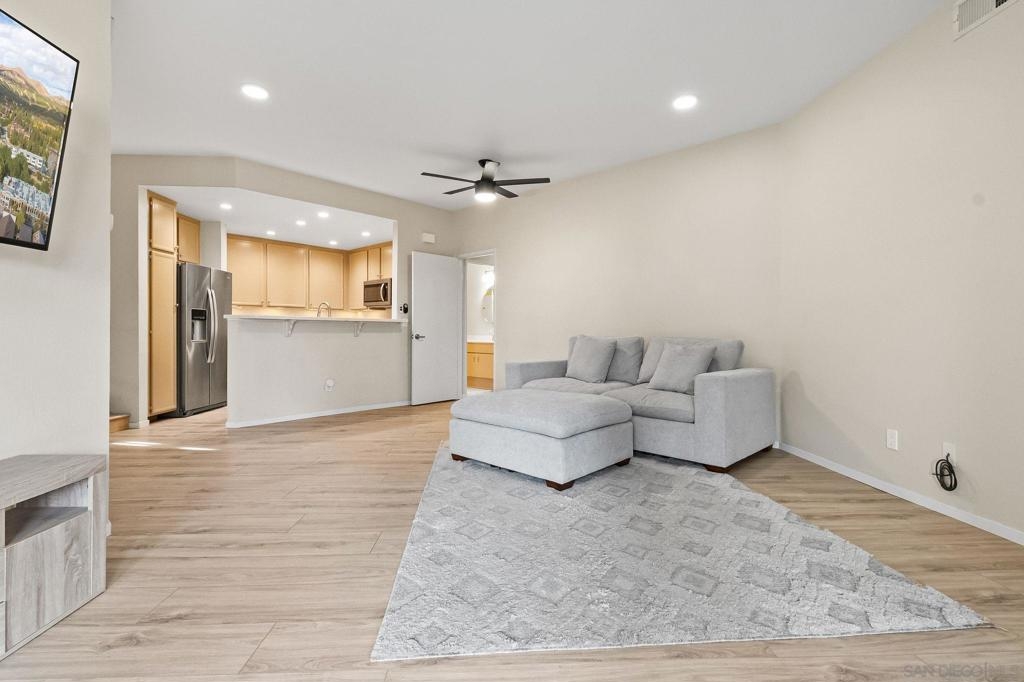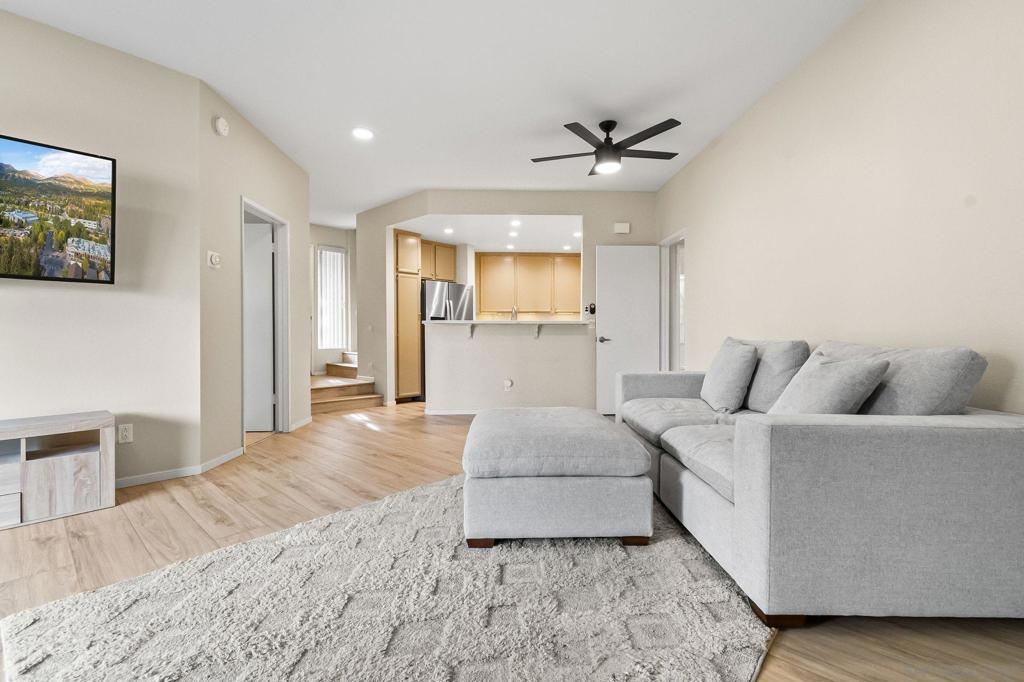 Welcome to this beautifully upgraded end-unit condo tucked away in a quiet cul-de-sac in Santee. Offering exceptional privacy and abundant natural light, this move-in-ready home features a long list of tasteful upgrades throughout and a serene, peaceful balcony—perfect for morning coffee, alfresco dining, or unwinding at the end of the day. Enjoy the convenience of an attached garage with epoxy-coated floors, plus an additional assigned parking space just steps from the garage—a rare and valuable bonus. The HOA covers water, trash, and community maintenance, allowing for truly low-maintenance living. Residents enjoy resort-style amenities including a sparkling pool and relaxing Jacuzzi, all within a well-maintained community. As an added bonus, this home is just a short walk to Mission Trails Regional Park and Kumeyaay Lake, offering endless opportunities for hiking, nature walks, and outdoor recreation. Ideally located near shopping, dining, parks, and freeway access, this end-unit offers the perfect blend of comfort, privacy, and convenience. Turnkey, quiet, and upgraded—this is San Diego living at its best.