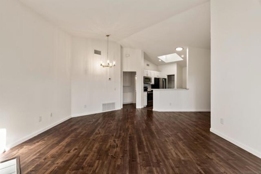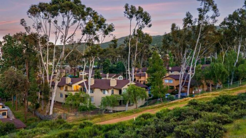 Set along the edge of Highland Trails, surrounded by natural beauty at the base of Mission Trails Regional Park. This light-filled top-floor residence offers one of the most desirable locations in the community, capturing sweeping mountain views from every room, offering a rare and immersive natural backdrop throughout the home. Featuring the most sought-after floor plan with dual primary suites, soaring ceilings, multiple skylights, and a cozy fireplace create an inviting living space. The kitchen includes a full suite of stainless appliances, breakfast bar, and walk-in pantry. Enjoy direct access to your private attached 1-car garage with full-size washer and dryer, added storage, and EV charger, plus an additional assigned parking space. Recent upgrades include fresh interior paint, new LED lighting, ceiling fans, and new carpet on the staircase and in closets. Bordering over 5,800 acres of preserved parkland with miles of scenic trails, including Cowles Mountain and Lake Murray, this home offers a rare blend of tranquility and convenience. Ideally located near freeways, shopping, and just minutes to Santee Lakes Recreation Preserve. Community amenities include a pool and spa, with HOA covering water, sewer, trash, and basic cable. VA and FHA approved.