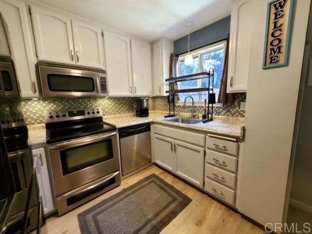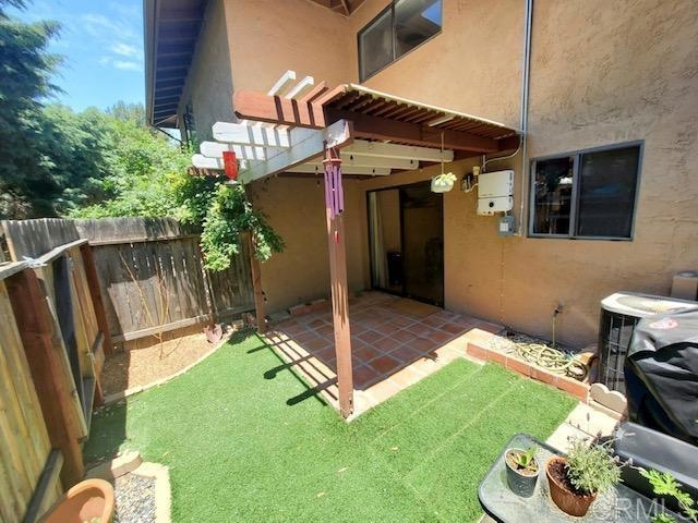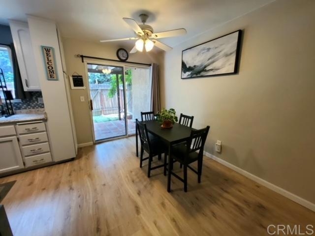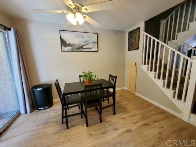 Move in ready perfect property for a first time home buyer. Vinyl plank flooring in living, dining and kitchen with recessed lighting and slider to rear yard with patio and turf to enjoy outside time for bbq's and fun. Downstairs half bath with your own stackable washer/dryer. All appliances including newer black stainless steal refrigerator stay!! Area under stairs was enclosed by previous owner for added storage. Upstairs you have 2 generous sized bedrooms and a full bath. Central heat and air. Recently purchased solar so you can keep it cool and affordable in those hot summer months!! Around the corner from the home you have a garage for parking or added storage. Additional parking space also included with visitor parking spots scattered throughout the complex for guests. Complex features community pool and spa. Easy freeway access only minutes to the 125 and 52.