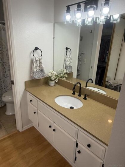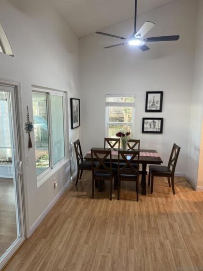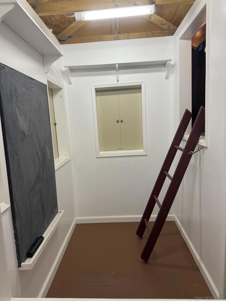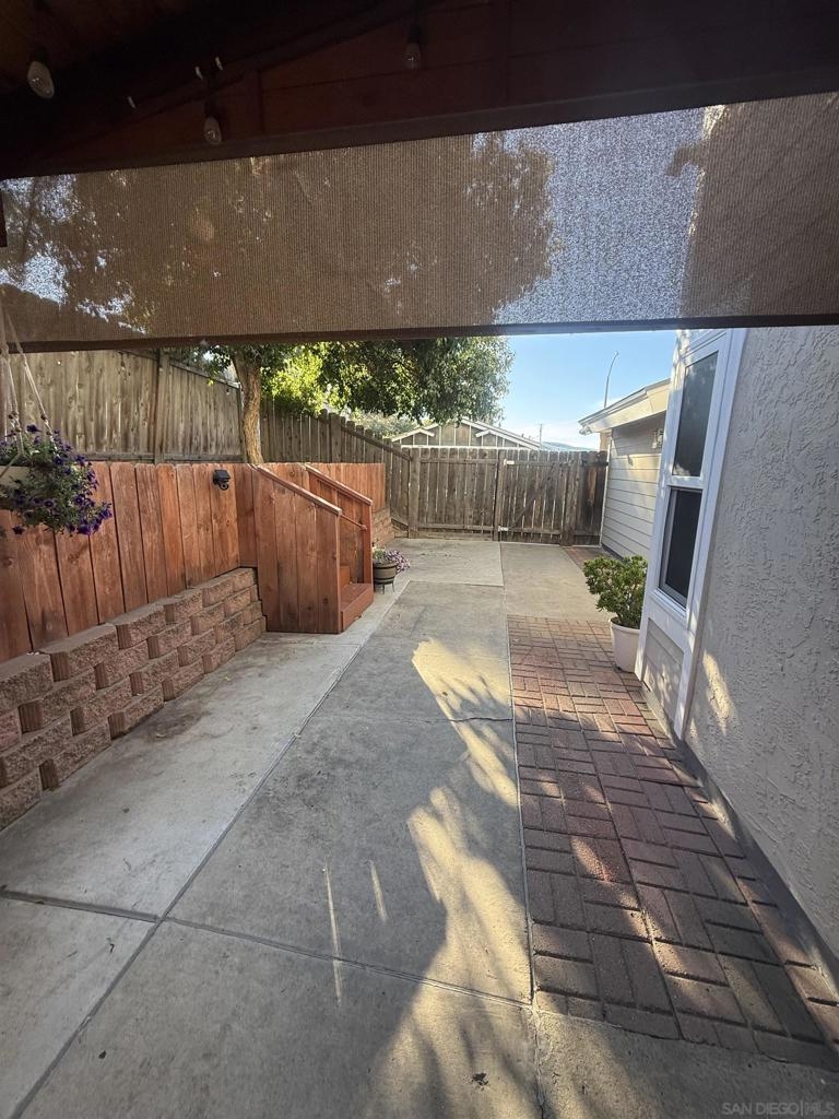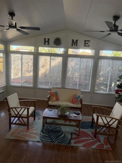 This pristine move in ready home located in a quiet cul-de-sac, boasts amazing curb appeal and it is conveniently located in lovely Santee, walking distance to desirable Chet F Harritt School grades K to 8th and beautiful Big Rock Park. Lots of beautiful shade trees surrounds the yard. Cathedral ceilings in the living and dining rooms. This 3 bedroom 2 bath home has an additional sunroom/family room offering 1600 sf of total living space, It has been upgraded with new dual pane windows, front door keyless hardware, new siding with fresh paint recently, recessed lighting throughout the rooms as well as remote controlled ceiling fans throughout the house. The kitchen has solid wood white cabinets with new appliances with plenty of counter space, and is open to the living and dining room, creating a comfortable flow. The extra large master bedroom upstairs offers a secluded loft feeling. The other two large bedrooms are downstair near the second bathroom and full laundry area. If you are looking for a well maintained home in a fantastic neighborhood for a great price, this is it! Don't miss this opportunity to own a perfect home with a backyard playhouse which features a slide and swings to create unforgettable memories.