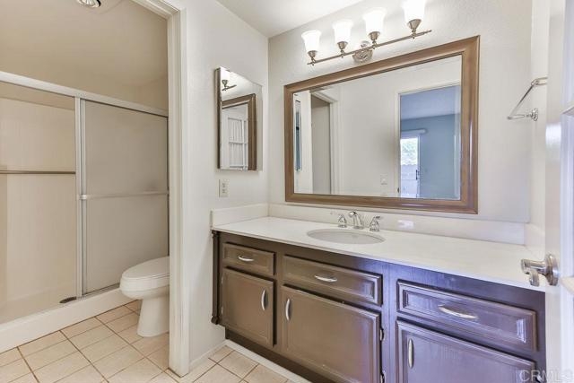 This home features a spacious floor plan with a balcony, a patio and is the largest unit in the complex. Entry level is to the living room, with direct access from garage to the kitchen. Both bedrooms, each with their own en-suite are located downstairs, one with its own private patio area. Come see this very desirable model and complex surrounded by Mission Trails Regional Park. VA and FHA approved. Besides the one car attached garage, you have an assigned parking spot.