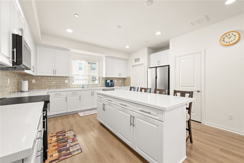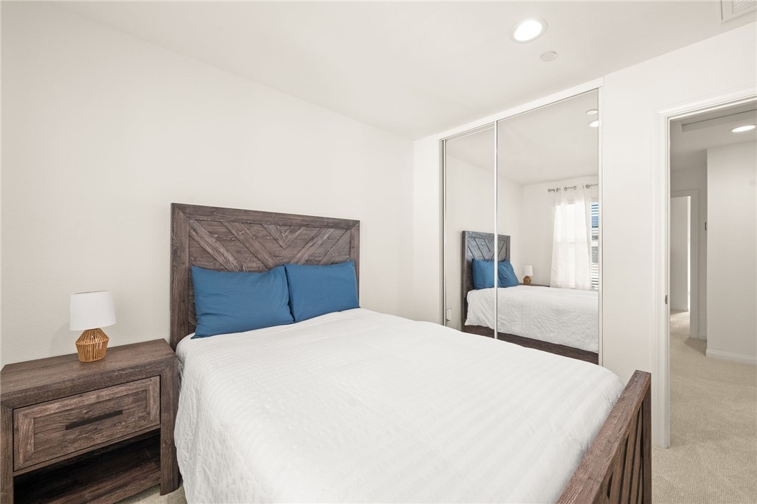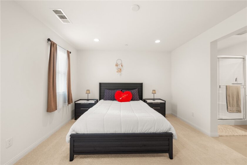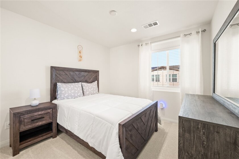 PRICE REDUCTION - Welcome Home to 8633 Amherst Street, a stunning, nearly brand-new, 4 Bedroom, 3.5 Bathroom townhome located in Prospect Park, one of Santee’s most desirable and thoughtfully designed communities. Offering 1,834 square feet of beautifully utilized living space, this exceptional residence blends modern style, smart efficiency, and everyday comfort. Inside, 9-foot ceilings, fresh interior paint, and a sophisticated mix of luxury vinyl plank flooring, high-traffic carpet, and porcelain tile create a bright, airy atmosphere throughout. The home is fully electric and features PAID-OFF solar panels, delivering impressive energy efficiency and long-term savings. One of the most sought-after features of this floor plan is the downstairs bedroom with an en-suite bathroom and walk-in shower, ideal for guests, multigenerational living, or a private office. Adjacent is the attached two-car garage with high ceilings, epoxy floors, an electric water heater, and an EV charger, offering both functionality and future-ready convenience. Upstairs, the open-concept living space is designed for connection and entertaining. The gourmet kitchen features a large center island, pantry, quartz countertops, custom backsplash, and high-end electric Samsung and Frigidaire appliances. Nearby is a comfortable dining area, a private laundry room with ample storage, and brand-new stackable washer and dryer. The sellers selected the upgraded electrical package, pre-wiring every room for sound, ceiling fans, additional lighting, and comes with a built-in Wi-Fi mesh system for seamless connectivity throughout the home. Step outside to your first fully covered balcony with recessed lighting, perfect for relaxing mornings or evenings. The upper level offers additional storage cabinetry, two spacious bedrooms, and an oversized primary suite featuring dual quartz vanities, a walk-in shower, generous walk-in closet, and access to a second covered balcony with recessed lighting. Two additional bedrooms share an oversized bathroom with dual quartz sinks and a soaking tub/shower. Enjoy the lifestyle Prospect Park offers — close to shopping, schools, parks, walking trails, and major commuter routes. The HOA covers front and backyard landscaping and watering, allowing for low-maintenance living. Thoughtfully priced, featuring low property taxes, premium upgrades, and turnkey condition, this home is ready for its next owner. Contact us today for more information.