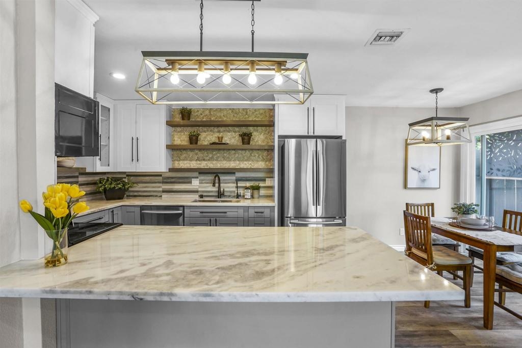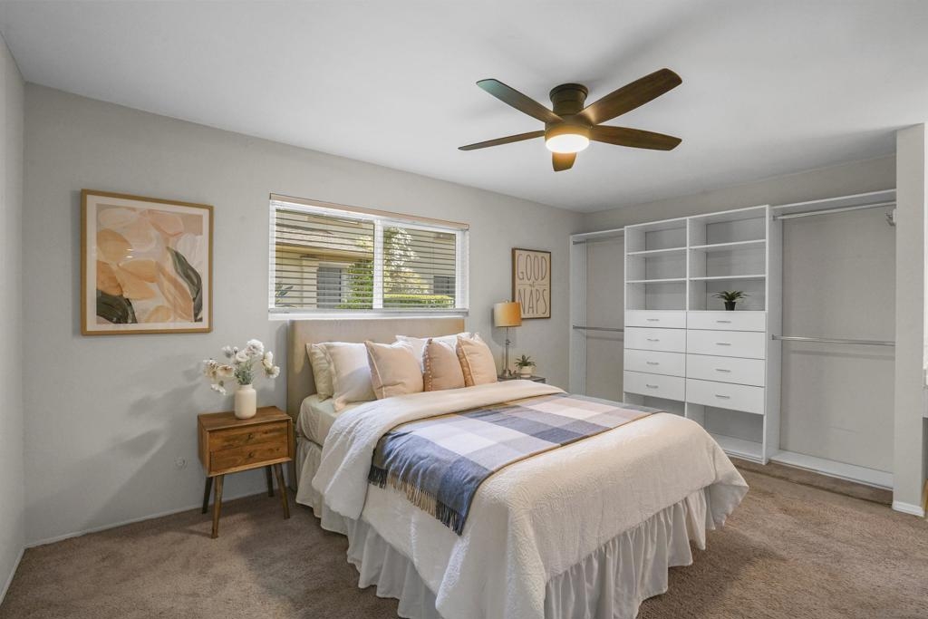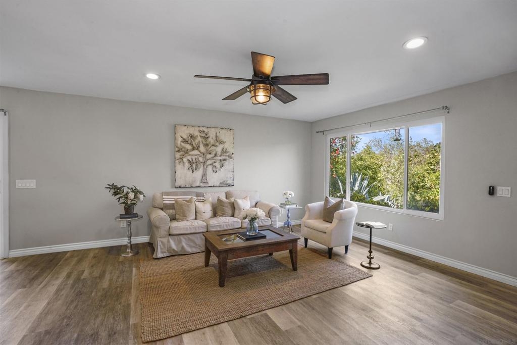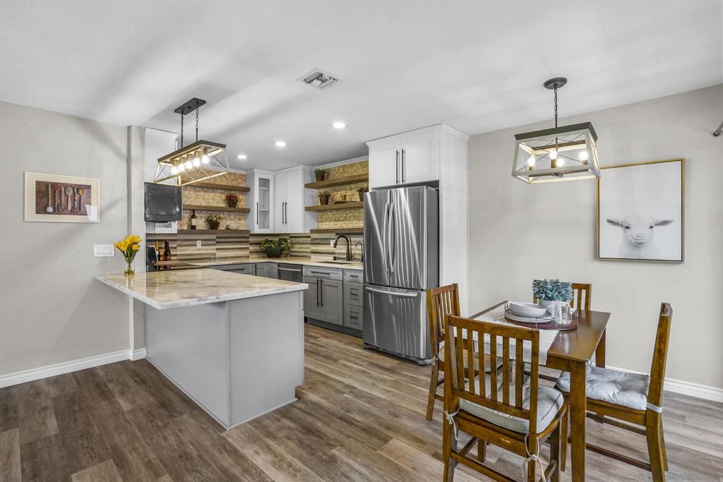 RARE CORNER-UNIT FLETCHER VILLAS TOWNHOME: 3BR/2BA MODEL w/ HUGE PATIO & 2 CAR GARAGE.” WHAT WE LOVE: *Single story, nobody above/below, share only one wall and other three sides are open and drenched with natural light. Perched up above the neighbors so you look out LR and see nothing but the mature canopy of landscaping and trees! *Oversized patio feat. custom privacy fence and pergola. Patio is north facing so get 6ft. privacy fence and shielding from direct sun. *Remodeled kitchen, two tone cabinets, curio, tile backsplash, floating shelves, stainless steel *Updated dual pane windows, wood flooring, master bath shower, fixtures & HVAC (WHAT WE LOVE, CONT.) Welcome to the vibrant community of Santee, where a community built on the shoulders of “always living your ideal lifestyle”, awaits. Nestled amidst the beauty of San Diego and only 30 minutes from Downtown, Santee embraces the outdoor enthusiast within you with the proximity to Santee Lakes, a serene haven for fishing, picnicking, and boating. For those craving adventure, the nearby Mission Trails Regional Park beckons with its stunning hiking/biking trails and breathtaking vistas. Santee effortlessly combines natural beauty with modern conveniences, as you'll find a host of shopping, dining, and entertainment options just minutes away. The location of Fletcher Villas is flawless: 3 turns and a few sips of coffee, and you’re on the 52 heading east or west, or, the 125 heading south. And, you don’t have to worry about crosstown traffic whizzing past your front door because its off street, so your only activity will be from your own neighbors. And, with the added convenience of a 2-car garage, this townhome/condo truly presents an excellent value that is sure to captivate your family & friends stopping by for a visit.