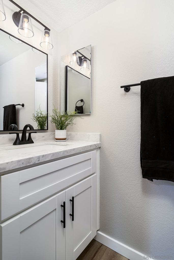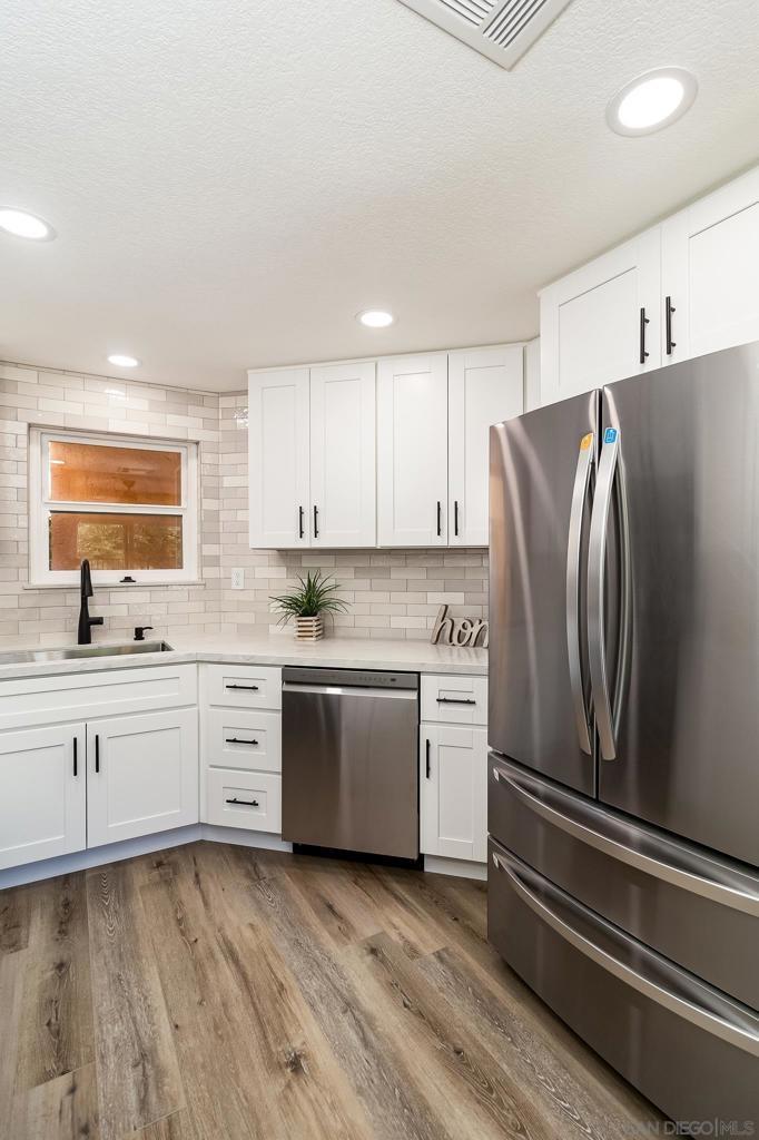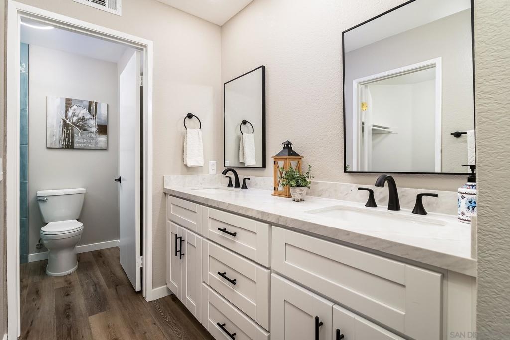 Indulge in the elegance of this three-bedroom, 2.5 bathroom townhouse in Vista Del Verde. Less than a mile from Carlton Oaks Public Golf Course and situated directly across from Santee Lakes, this home offers the perfect blend of comfort and luxury. Featuring a shared wall for added privacy, this residence boasts a living room fireplace, upgraded flooring downstairs, and new, efficient appliances. The primary suite is equipped with dual sinks, a large walk-in shower, and ample storage. Additional amenities include new double-pane windows, new AC unit, and access to community recreational facilities such as a pool, spa, and garden, as well as nearby hiking trails. All appliances included. THE NICEST TOWNHOME IN SANTEE, PERIOD. Its not a Flip! Top quality owner remodel. No stone is unturned with this top to bottom restoration. Every square inch of this home has been meticulously upgraded. Come in close and you will see a degree of workmanship that is a level set! Over 140k invested to make this home BRAND NEW. Every detail has been considered and its a must see. The list of upgrades is as follows: New LVP flooring throughout, including kitchens and baths. Baseboards, paint, switches and outlets are all fresh. New lights, fans and hardware throughout. Kitchens and baths are all fully remodeled with new vanities, light fixtures, towel holders and mirrors. Glass shower doors, fully tiled shower walls with new faucets and fixtures. The kitchen has brand new cabinets, hardware, faucets, and backsplash. The whole home has matching granite countertops from the kitchen to the baths to bring that rarely found uniformity. The kitchen backsplash and shower walls have a matching tile format to follow with the same theme. You won't find a more consistent and cohesive renovation anywhere! The water supply lines were replaced with new copper, the Air Conditioning system is brand new with a top rated SEER unit. The appliances are all brand new, stainless steel with warranties. Dual pane vinyl windows throughout lock in the cool air and abundant light. The whole house has LED lighting for excellent energy consumption, but the bathroom lights are BLUETOOTH ENABLED with speakers and color control... you can even set them to change colors and strobe with the beat. What a shower experience! brand new mirror sliding closet doors in each room. The master has a private upstairs patio and all the rooms are generously sized. The layout of the home is fantastic, taking full advantage of the western open skies overlooking the golf course and dedicated open space. The home has a wonderful back patio with an iron fence, high above the space below providing safety and privacy while enjoying the sight, sounds and smells of nature out your back door. The complex has direct access to the walking trails and golf course below, just a few doors down so when its time to clear your head or take the doggos for a walk its too easy! We have a pool and easy parking for guests to come hang out. The HOA maintains the building, the landscaping, the roof and parking lot so you just need to live your best life! This property is in MINT condition and will provide YEARS of worry free living, but equally as impressive is its location. Right next to Santee lakes and just minutes from the Sportsplex. Right off of Mission Gorge where its a straight shot to all things Santee including Costco, Target, Phils BBQ, Home Depot and more. It is just a few turns from the 52 and 125 freeways. No neighbors will ever move in behind you. there are only 6 homes to a cluster in this location so don't expect crazy busyness like the larger complexes. Easy to find for deliveries and friends to visit. The two car garage has been completely refaced as well so its clean and comfortable to use for parking your lovely cars or turn it into a flex space... gym, workshop, living room, bicycle shop, you name it. Its a two car garage with direct access to the house on ...