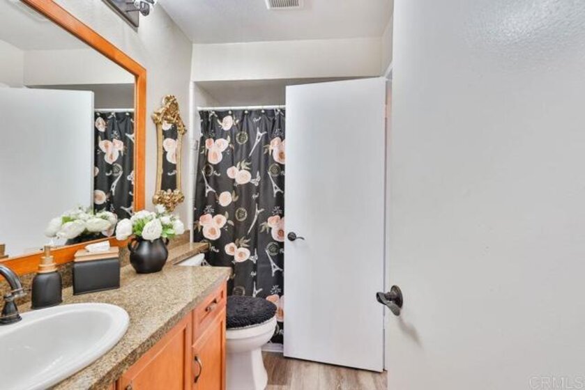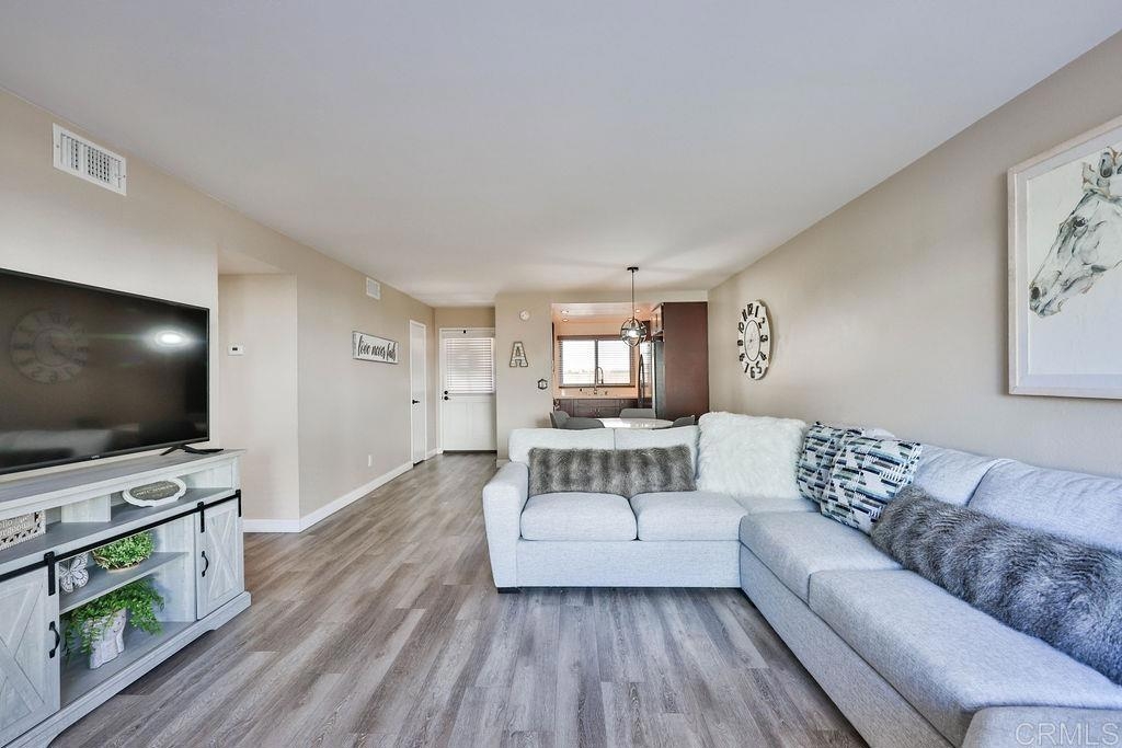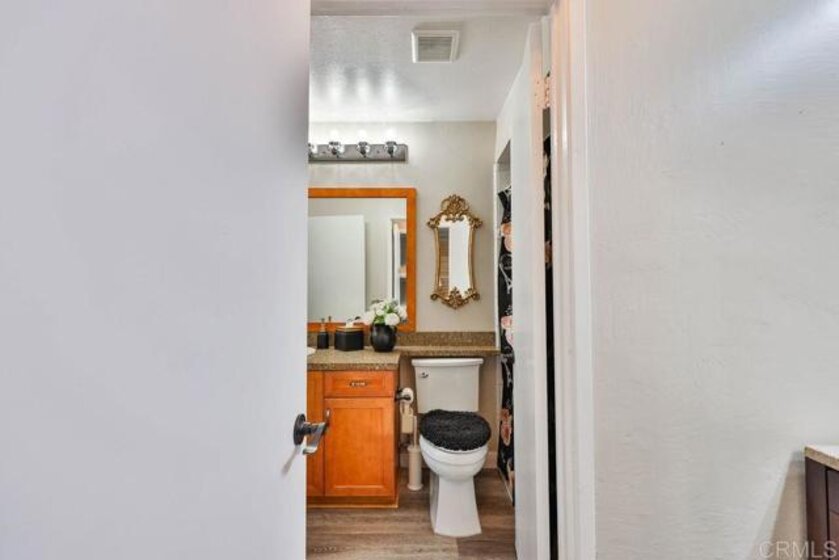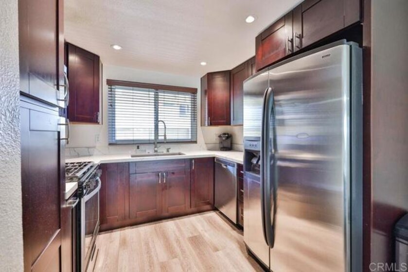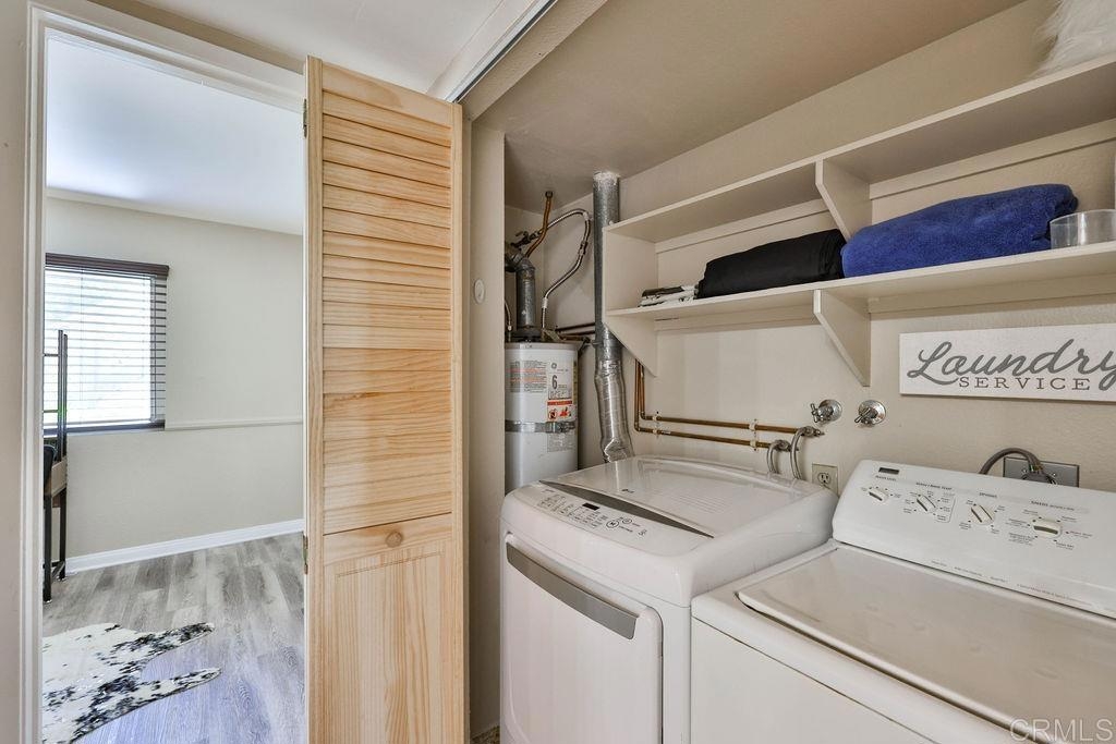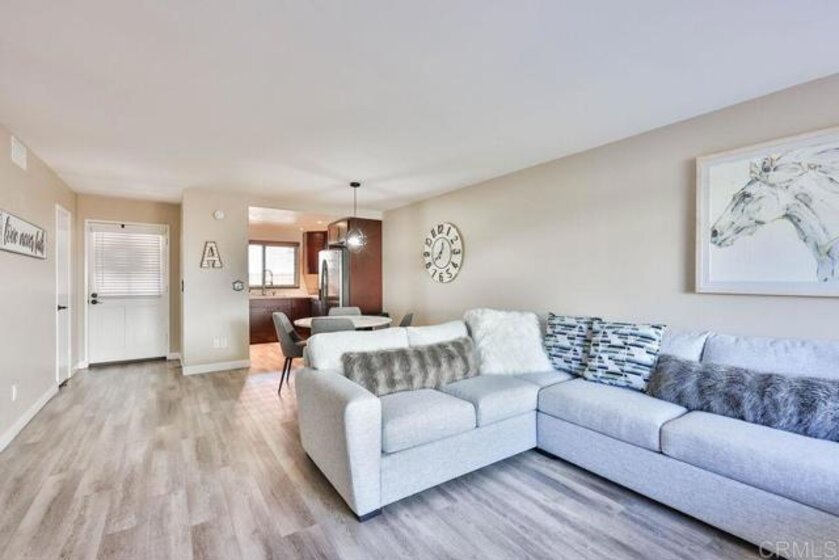 Pristine single level, first floor, two bedroom, one and a half bath condo located in Santee’s desirable GATED community, Riderwood Gardens! This condo has been beautifully updated with new kitchen cabinets, quartz countertops and stainless steel appliances. The master bedroom has a huge closet with CUSTOM shelving. Cozy up during the colder days with your very own FIREPLACE, enjoy central heat and air, newer double paned windows and in unit LAUNDRY. Park in your single car GARAGE and/or in the additional uncovered assigned parking space. The community includes a pool, spa and play area and the HOA fees are still quite low at $240/month.