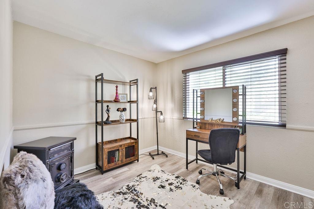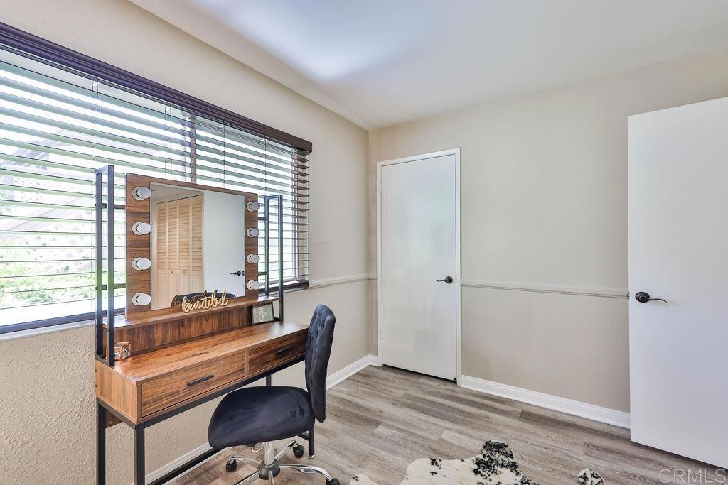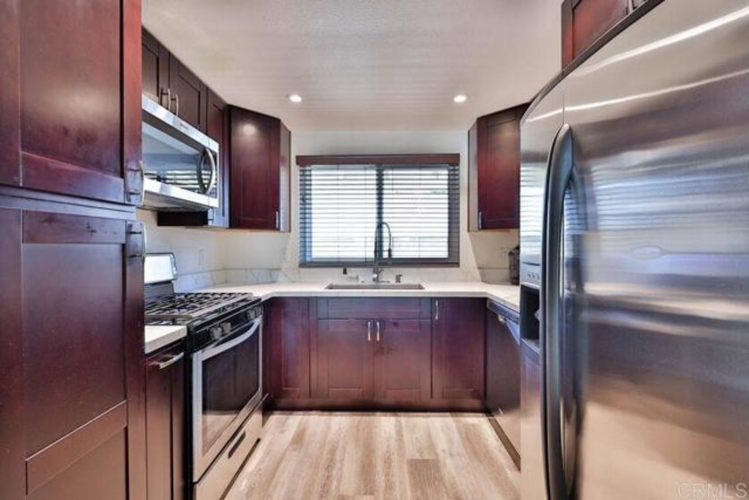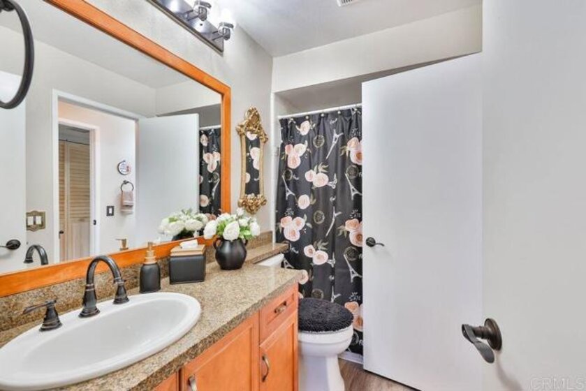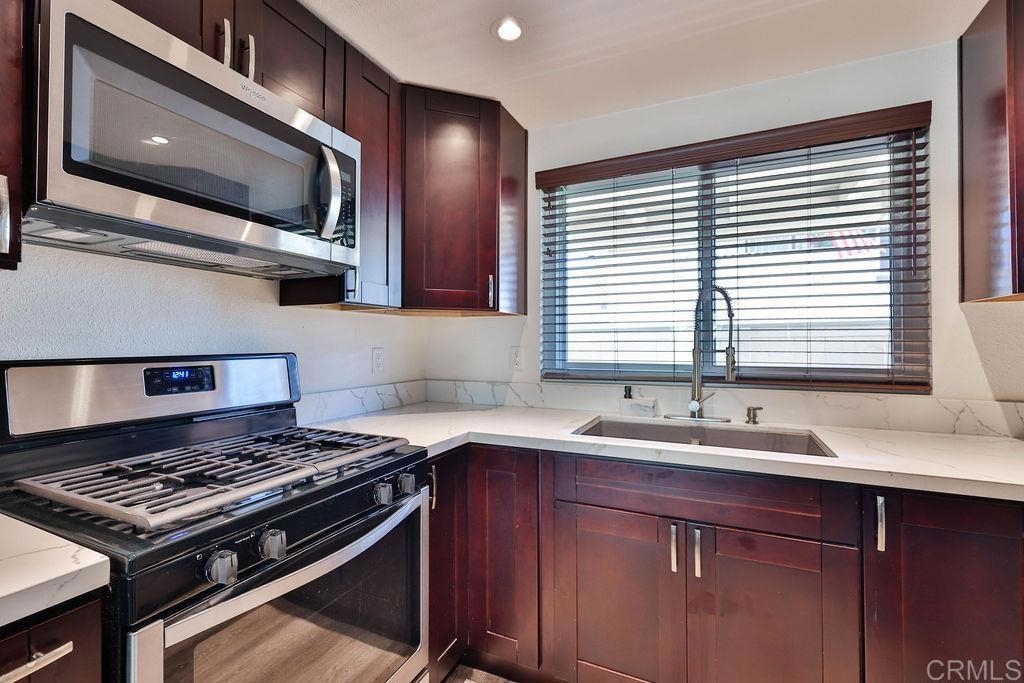 Pristine single level, first floor, two bedroom, one and a half bath condo located in Santee’s desirable GATED community, Riderwood Gardens! This condo has been beautifully updated with new kitchen cabinets, quartz countertops and stainless steel appliances. The master bedroom has a huge closet with CUSTOM shelving. Cozy up during the colder days with your very own FIREPLACE, enjoy central heat and air, newer double paned windows and in unit LAUNDRY. Park in your single car GARAGE and/or in the additional uncovered assigned parking space. The community includes a pool, spa and play area and the HOA fees are still quite low at $240/month.
