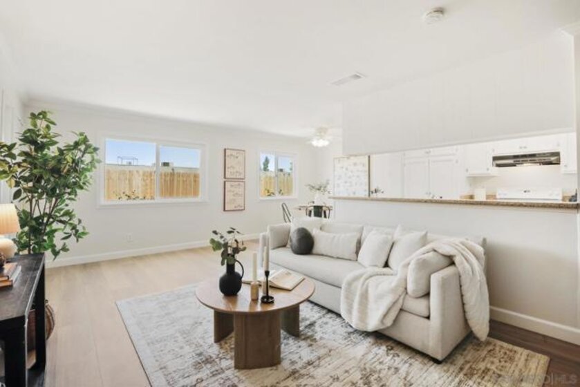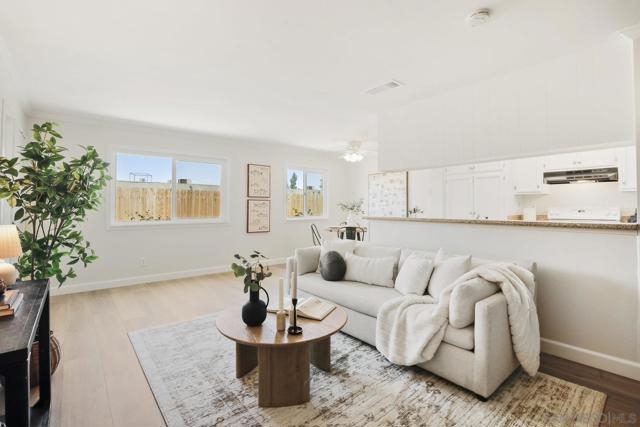 Private end-unit townhouse with trolley & shopping nearby. Discover privacy and convenience in this well-positioned end-unit townhouse with extensive updates. The two-story layout features a spacious living room flowing into the updated kitchen on the main level, with a private upstairs bedroom including walk-in closet. Recent improvements include fresh paint throughout, new carpeting, new windows, and smooth ceilings with no popcorn texture. Quality touches include 4-inch baseboards with new fresh new flooring on the main level including the stairs, central air conditioning for year-round comfort. The shared carport offers tandem parking and additional storage space, plus a 1-car garage. The convenient community laundry room is located nearby. Community amenities include a pool and spa for relaxation. Located within walking distance to Cuyamaca and Mission Gorge shopping, dining, and trolley access. Quick freeway connections and quiet end-unit privacy make this move-in ready townhouse an ideal Santee location.